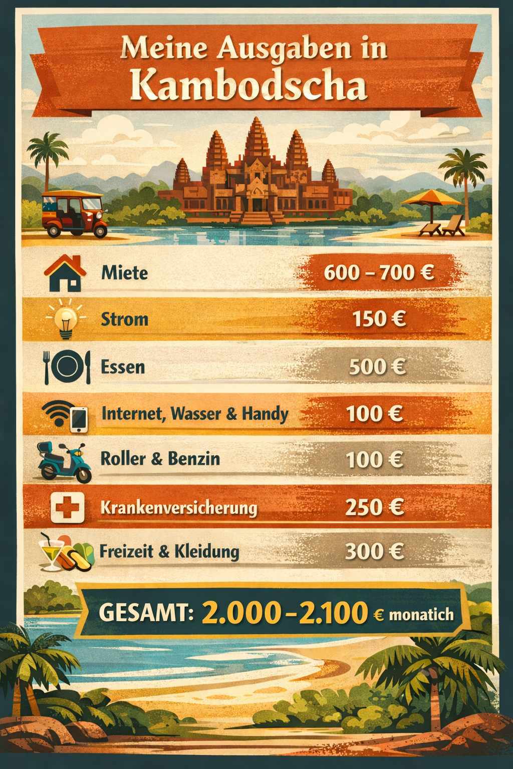 Meine angestrebte Frühpension wird voraussichtlich rund 2.400 Euro betragen. Damit wäre ich auf einer stabilen Basis. Mir ist bewusst, dass ich damit im Vergleich zu vielen anderen in einer komfortablen Situation bin. Es gibt genügend Menschen, die mit deutlich weniger auskommen müssen. Und ja, auch das ist möglich – gerade in Kambodscha. Aber dann lebt man anders. Und genau das ist der Punkt. Ich habe für mich entschieden, nicht am Limit zu leben, sondern mit einem gewissen Spielraum.