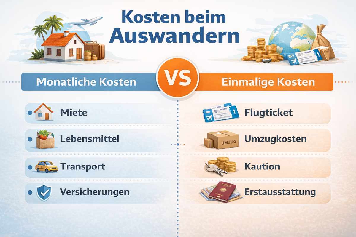 Was viele beim Auswandern komplett unterschätzen, sind die Anfangs- und außerplanmäßigen Kosten. Auch hier spielt Geld beim Auswandern eine größere Rolle, als man zunächst denkt. Diese Ausgaben kommen oft geballt am Anfang und können schnell mehrere tausend Euro ausmachen.