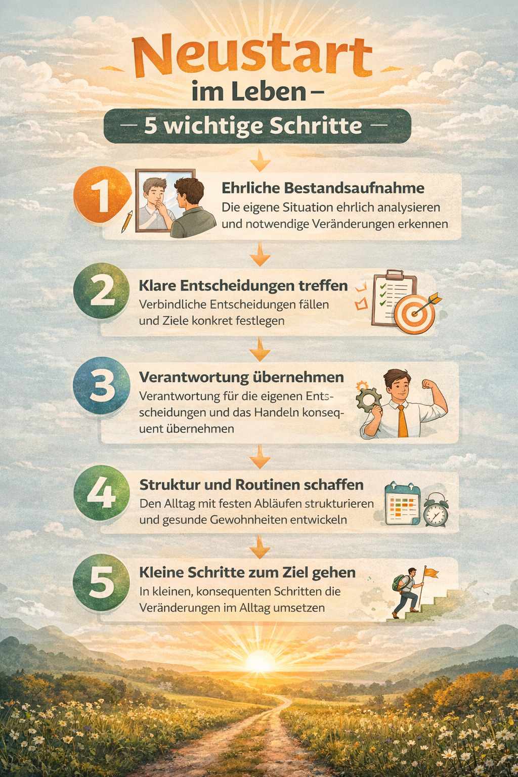 Zusammenfassend lässt sich sagen, dass ein Neustart im Leben kein Zeichen von Versagen ist, sondern ein Ausdruck von Bewusstsein. Wer erkennt, dass sich etwas ändern muss, hat bereits den wichtigsten Schritt gemacht. Der eigentliche Weg besteht darin, diese Erkenntnis in konkrete Handlungen umzusetzen und Schritt für Schritt eine neue Richtung einzuschlagen.